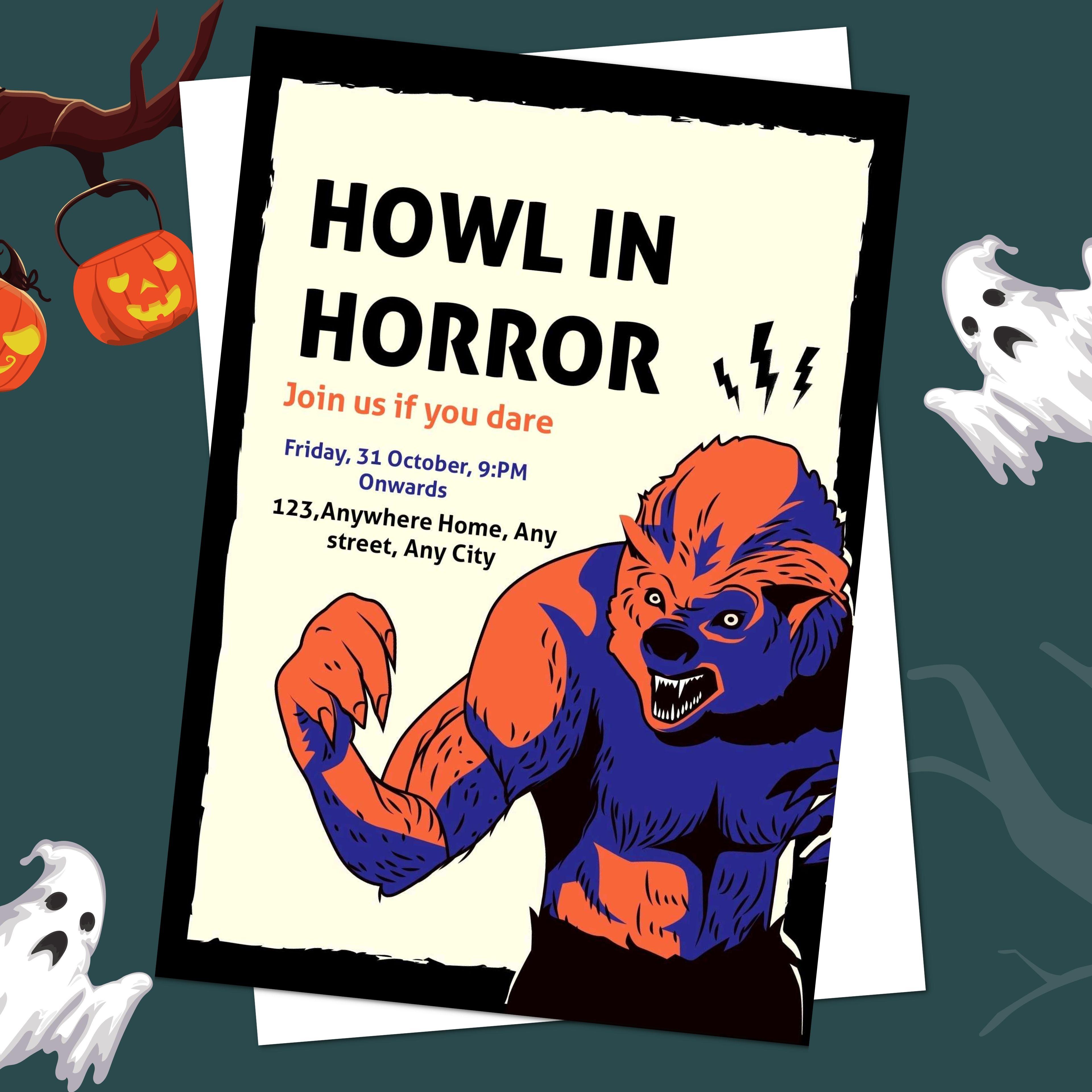 Text: Are you organizing a Halloween Party? Use the Halloween Party invitation maker to send Halloween party invitation cards. Add information like place, timing, etc.