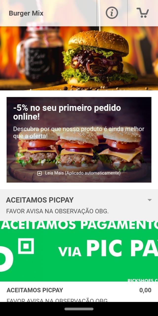 Mix Burger, proveniente del desarrollador fazerpedido.online, se ejecuta en el sistema Android en el pasado.