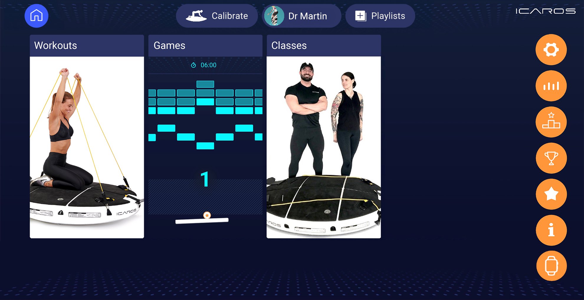 Choose ICAROS App Pro to benefit from full access to a great number of professional trainings, playful exergames and a comprehensive library of exercises. ICAROS App Pro is available for 16,99 € incl. VAT per month (monthly subscription). Start your 14 days free-trial today.