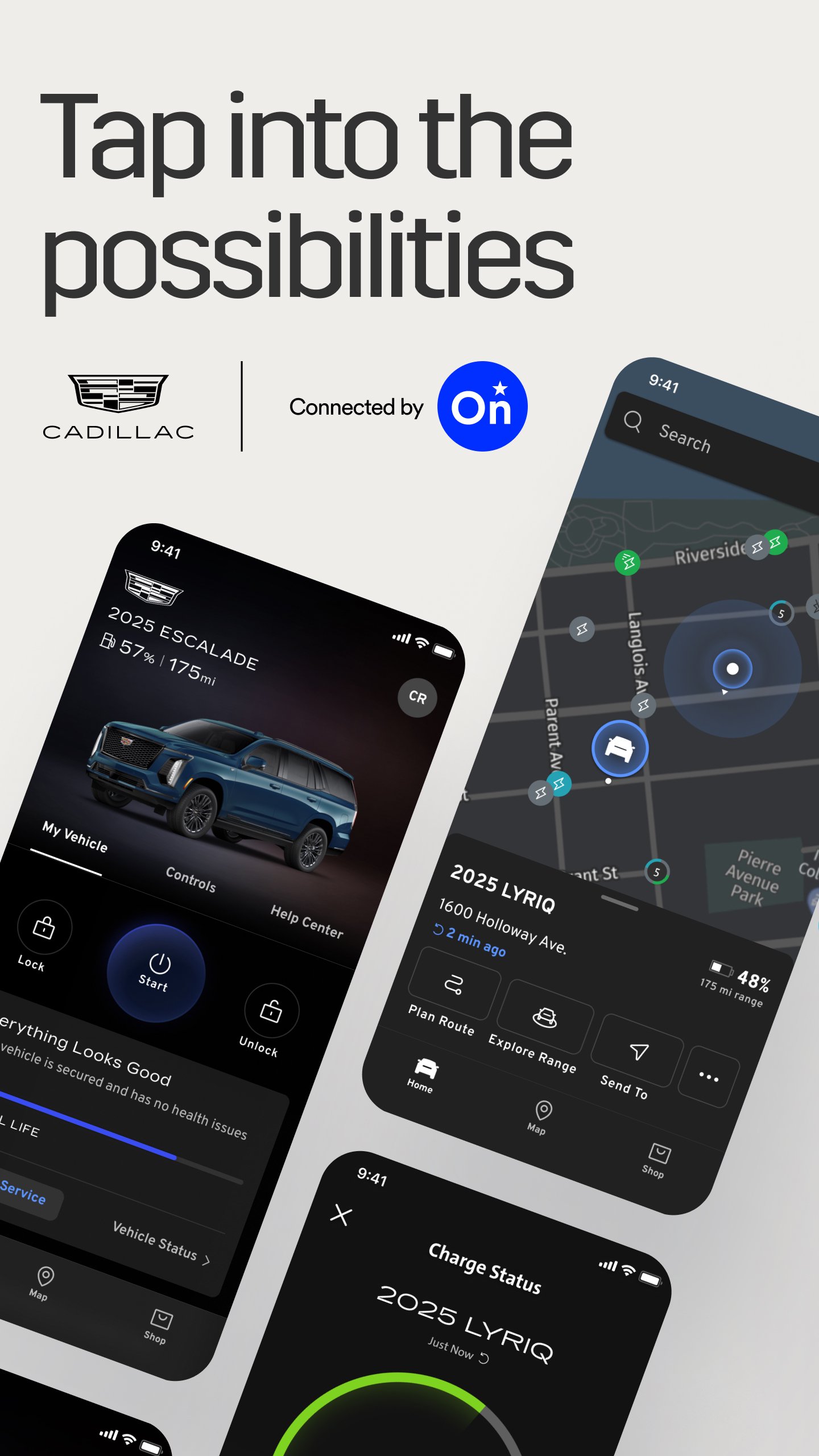Enjoy the luxury of vehicle control at your fingertips with the myCadillac app, connected by OnStar. Start your vehicle, set your ideal cabin temperature and more right from your phone. You can also easily find your vehicle and get walking directions to its location. Plus, keep track of your fuel level, tire pressure, oil life and odometer. You can even schedule service and request Roadside Assistance with the tap of a button. Get the app that makes ownership better at every turn. Download now.