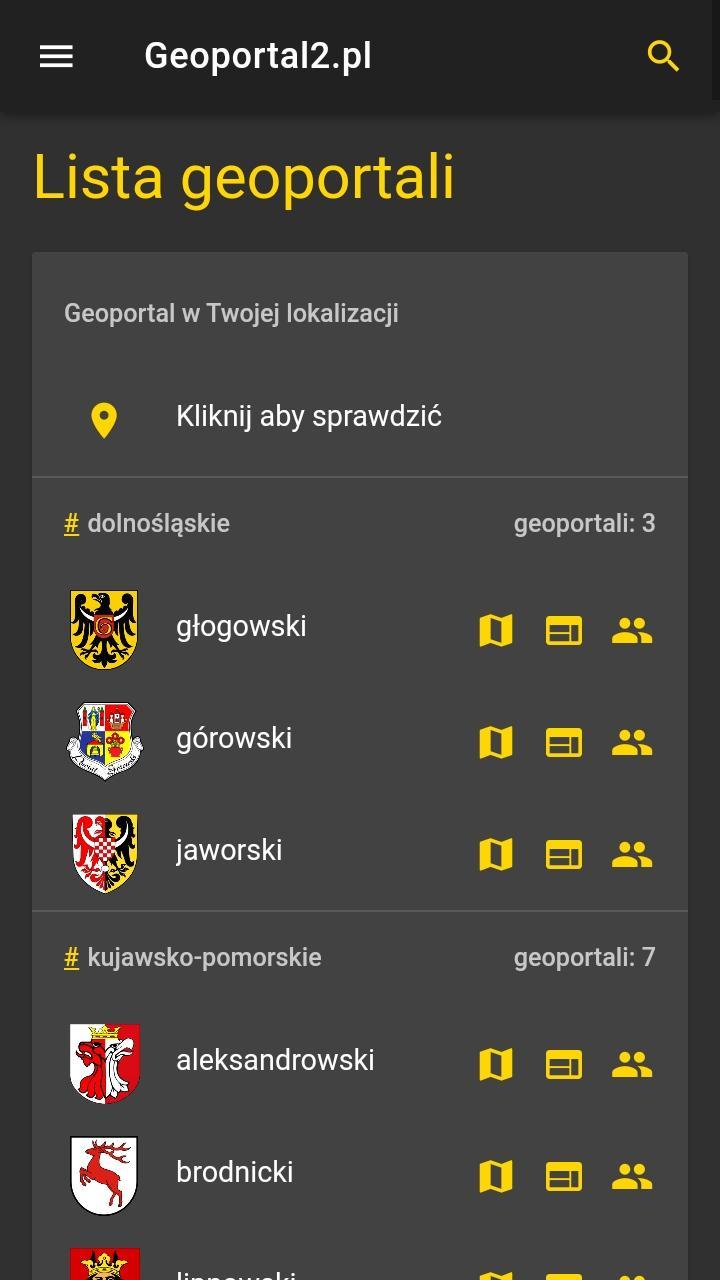Application enabling browsing of poviat, municipal and commune geoportals in GEOBID's GEOPORTAL 2 technology.