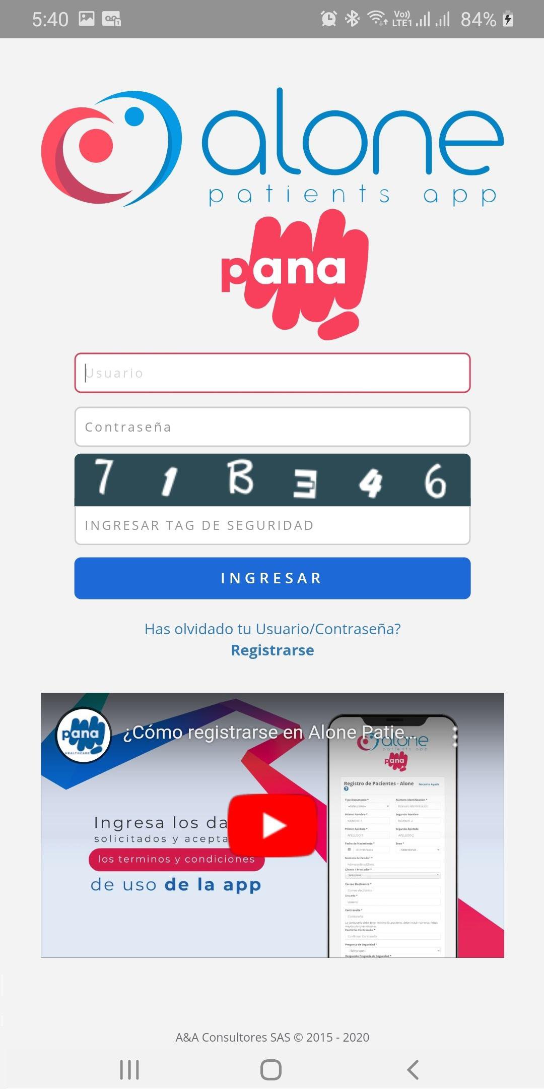 Alone Patients App, proveniente del desarrollador PANA BUSINESS SAS, se ejecuta en el sistema Android en el pasado.