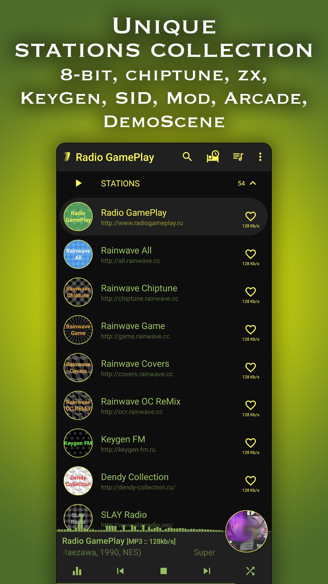 - More than 50 game radio stations + new station every update(write in comments your recommendations!)