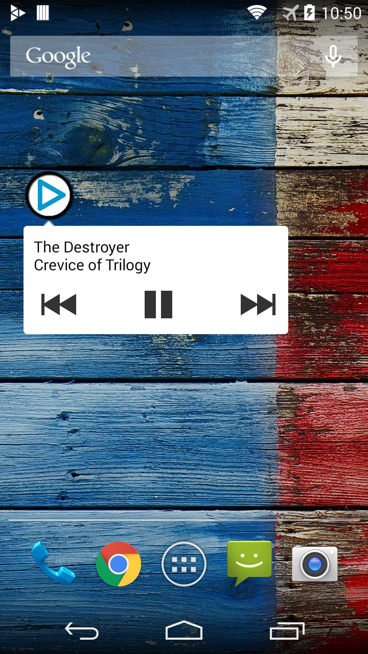 Shows the currently playing track and artist in Floatifications (Floating Notifications) along with buttons to control your music (play/pause/next/previous). Tapping on the next in the notification will launch the player of your choice (you must select the player to launch in the preferences).