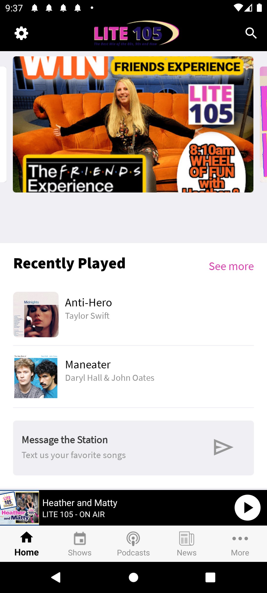 Listen to Lite 105 ANYWHERE you go by downloading our App on your phone and all of your devices. Get access to Heather & Matty in the Morning Podcasts, our playlist, unique content, weather, an alarm clock, access to our Facebook, Instagram and more!