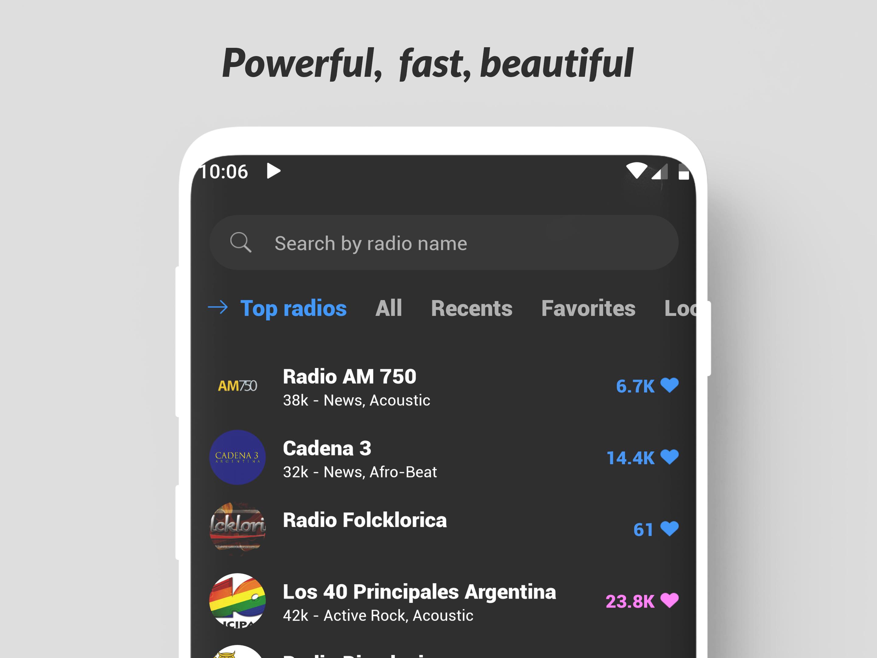 - Easily add your favorite radios to your favorites list