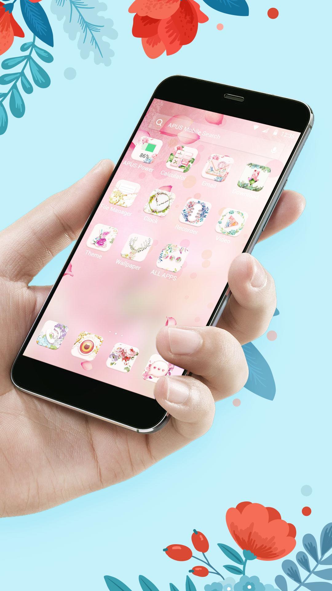 1. Beautiful Pink Girly Flowers theme & wallpapers is free, but only compatible with APUS Launcher. If you want to apply it, please install APUS Launcher on your Android phone. Or download new theme and APUS Launcher. When you install APUS Launcher, there are variety of themes in APUS theme & wallpaper shop, such as phonex, lovely unicorn, pink diamond mickey, Red heart, luxury, gold, business, black, simple, magic, comic, football, basketball, cricket, Valentine's Day, New Year, Halloween, Christmas, cute cat and dog, butterfly, dawn theme. Install APUS launcher to enjoy more themes.