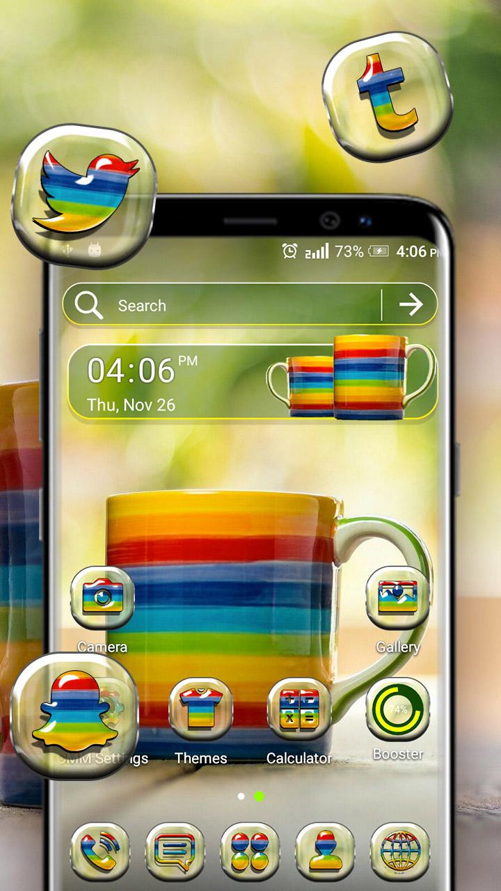 Come and download the Rainbow Cup Launcher Theme theme for free and make your Android mobile stylish.