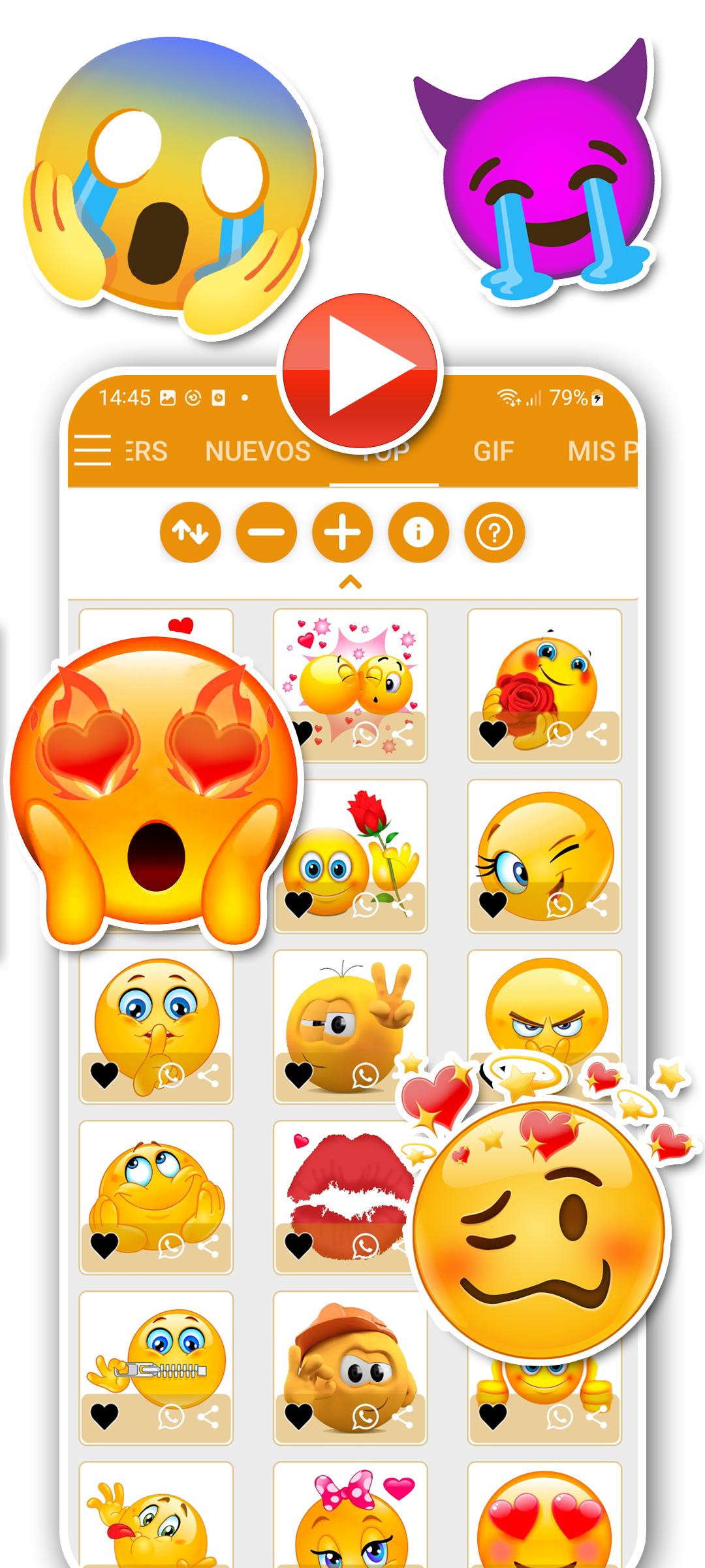 Choose from hundreds of emoji stickers to share in your conversations. The best thing is that our WhatsApp emoji stickers are divided into packages like New WASticker, top rated and similar categories like emoticons for WhatsApp, love and romance emojis for WhatsApp, emoji stickers, love stickers for WhatsApp and more.