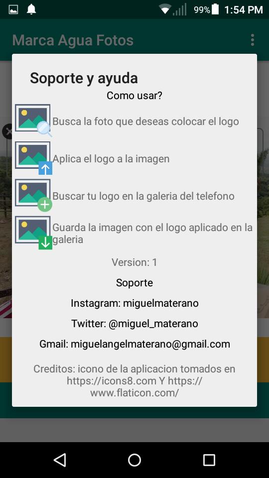 Marca Agua En fotos, proveniente del desarrollador Desarrollos freelance, se ejecuta en el sistema Android en el pasado.