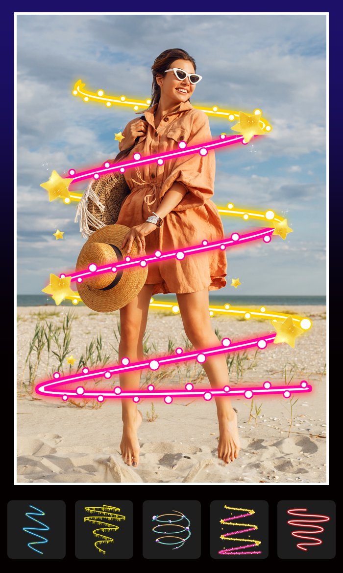 GlowPic Photo Editor is a wonderful editor that lets you edit your picture in an aesthetic and easy way! With GlowPic Photo Editor, you can create an amazing Spiral Effects, Neon Line Art, Background, Frames, Text and Fun Stickers.