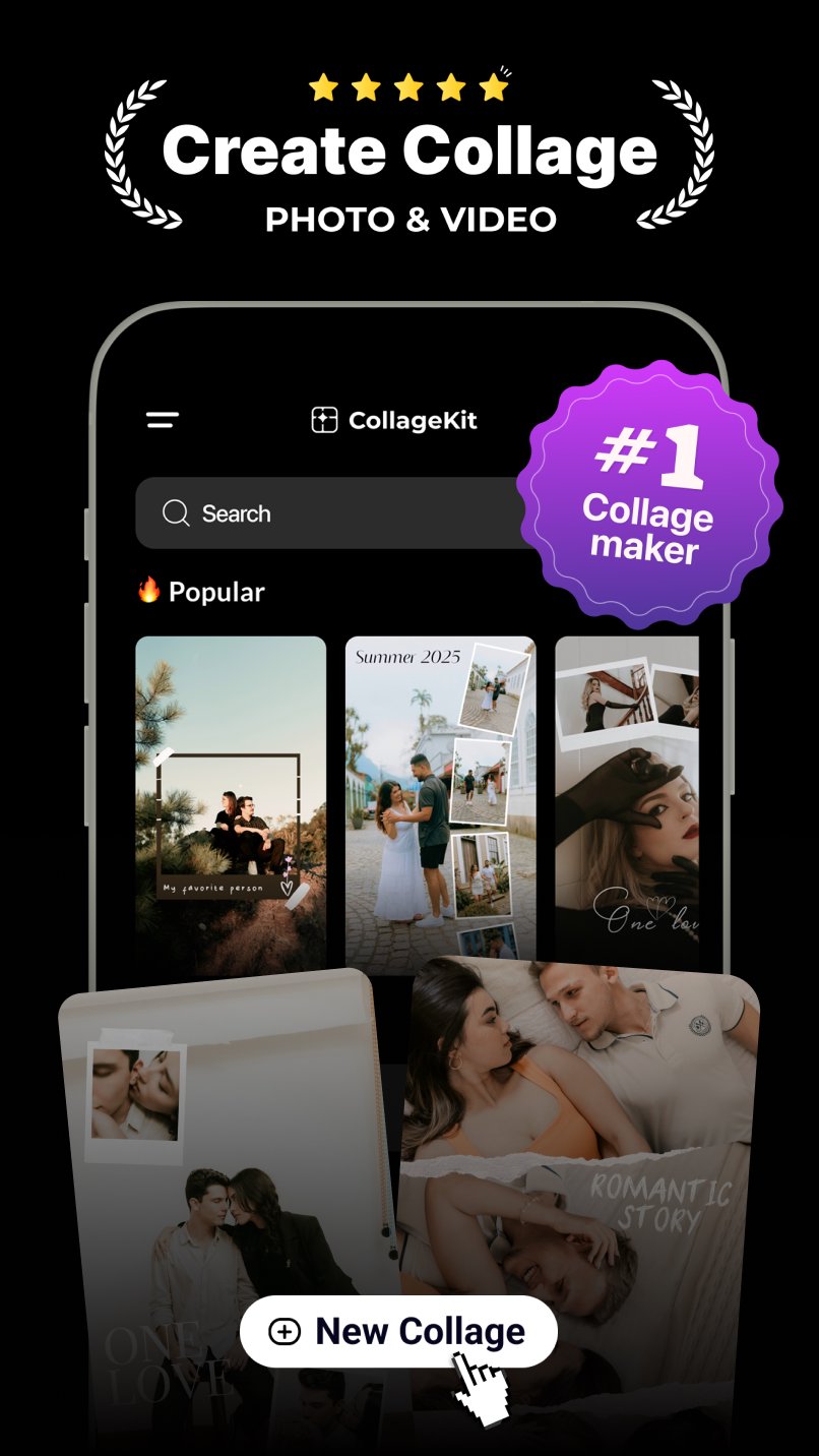 CollageKit is the easiest way to turn your photos and videos into eye-catching collages. With a wide range of templates, stylish layouts, and creative tools, it's designed for anyone who wants to tell a visual story — beautifully and effortlessly.