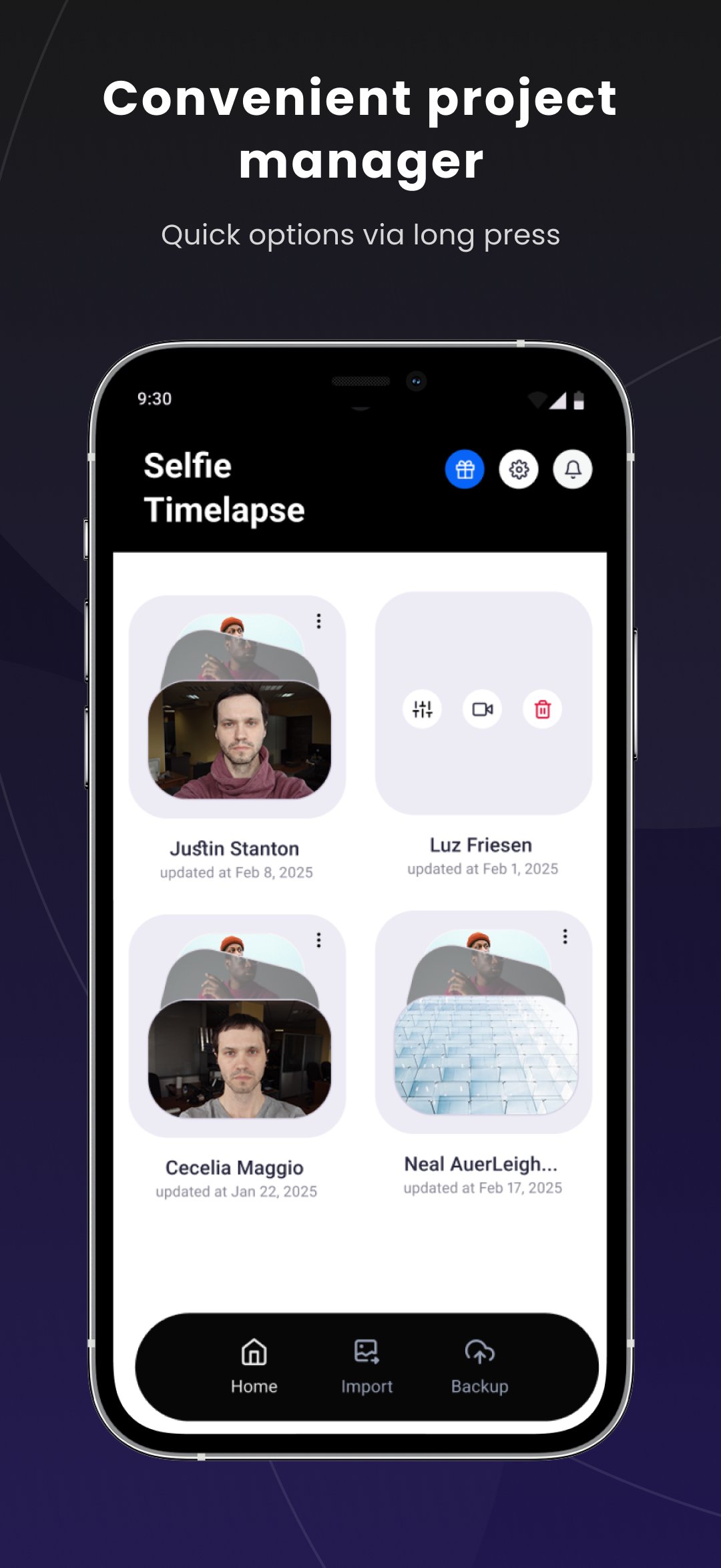 Selfie Timelapse turns your everyday selfies into stunning videos showing your transformation over time. Start your first project today — it’s easier than you think!