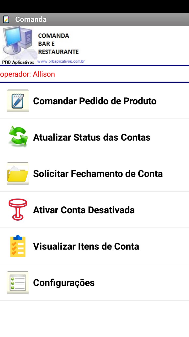 Application of electronic order for users of the application Windows of PRB Aplicativos.