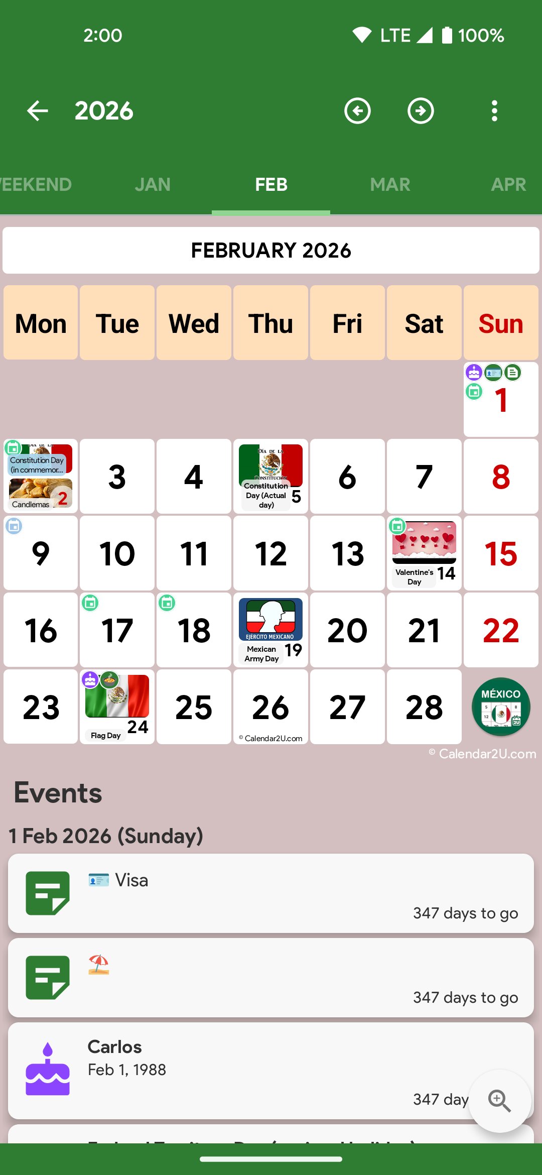 Calendar2U: Mexico Calendar - holiday calendar