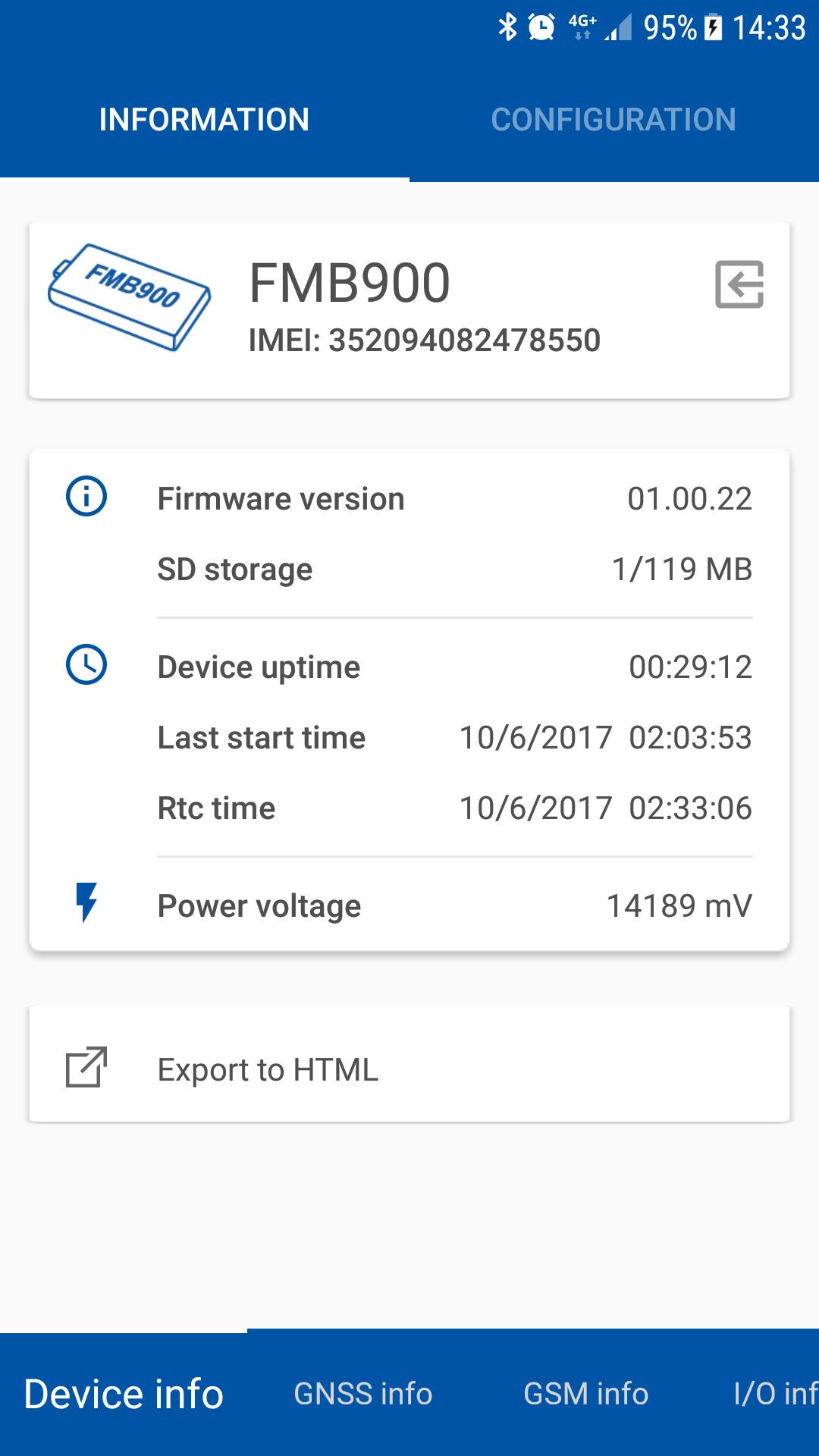 Application provides FMB device status live view over Bluetooth connection. It also allows simple FMB device configuration for easy and fast device launch.