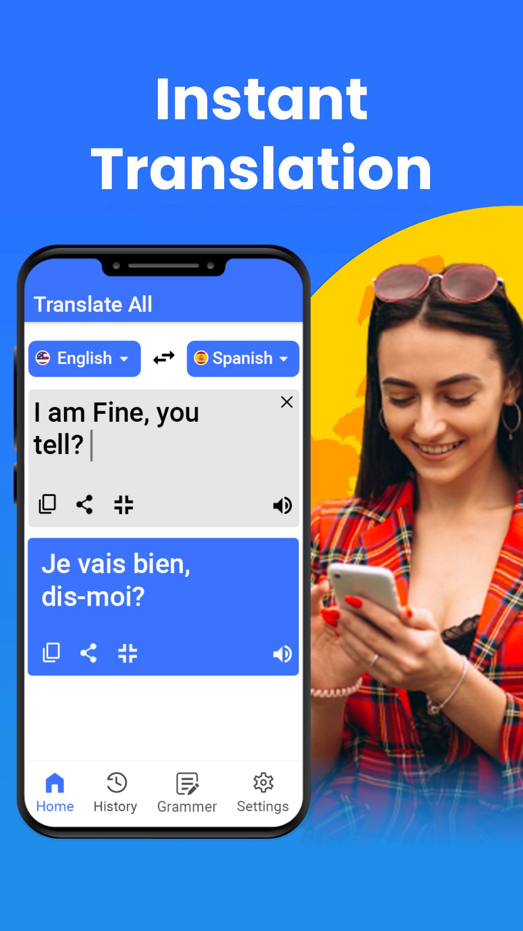 Goodbye to language barriers! 📸 Translate All - Photo Translator 📸 is an app for every translation task. Whether traveling abroad, learning a new language, or document translation, this app helps in every way. Use the power to translate photo texts, audio through your voice, or written content—and literally, the world is in your hands. Try - "Text translator all languages" - feature and enjoy our app!