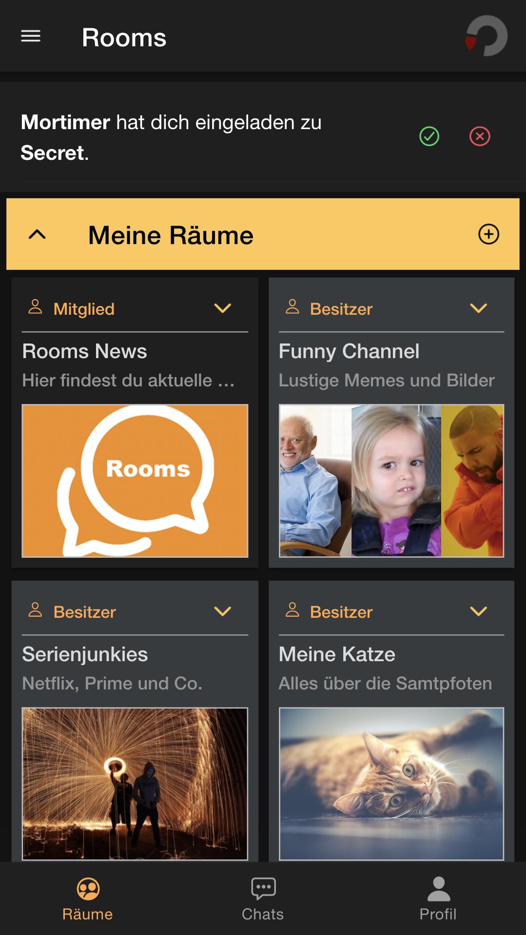 Rooms is a community app that is supposed to give you space for ideas, questions, answers or just to exchange information.