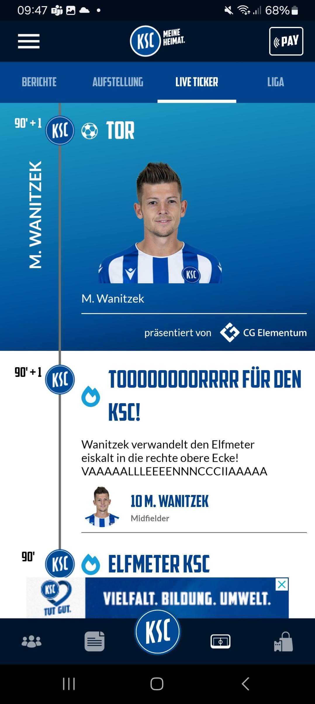 Get the official KSC app! We provide you with the latest news from the wildlife park. With the push notifications you are always up to date and never miss a thing! Everything you need to know about match days is waiting for you in the match center. With our live ticker you are up close and personal when it comes to points for your favorite club. Experience all social media offers and never miss a video from our YouTube channel “Wildpark TV”. New: Use your smartphone as a mobile ticket and for cashless payments in the stadium and in the online fan shop! This is made possible by the integration of Bluecode into the KSC app.