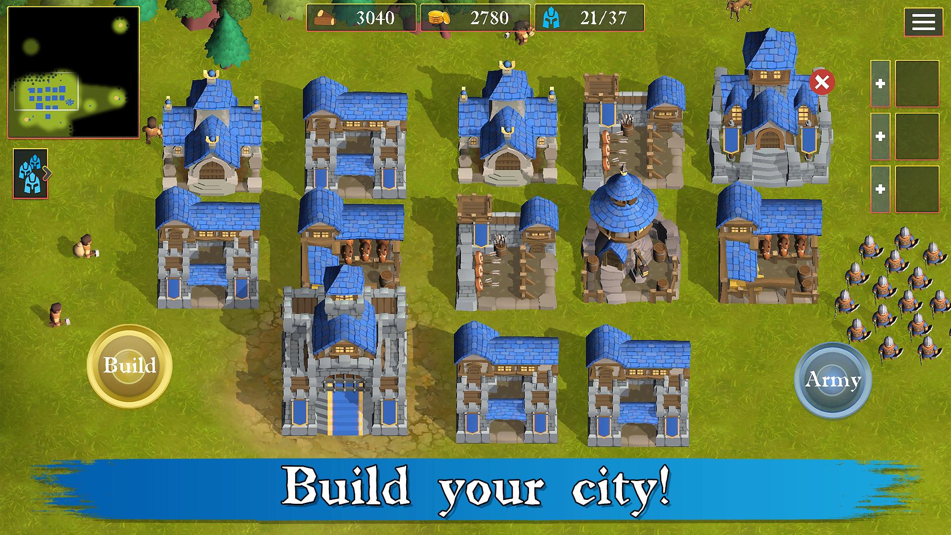 ⚔️ Build your city! Build various types of buildings to harvest resources and hire different types of units!