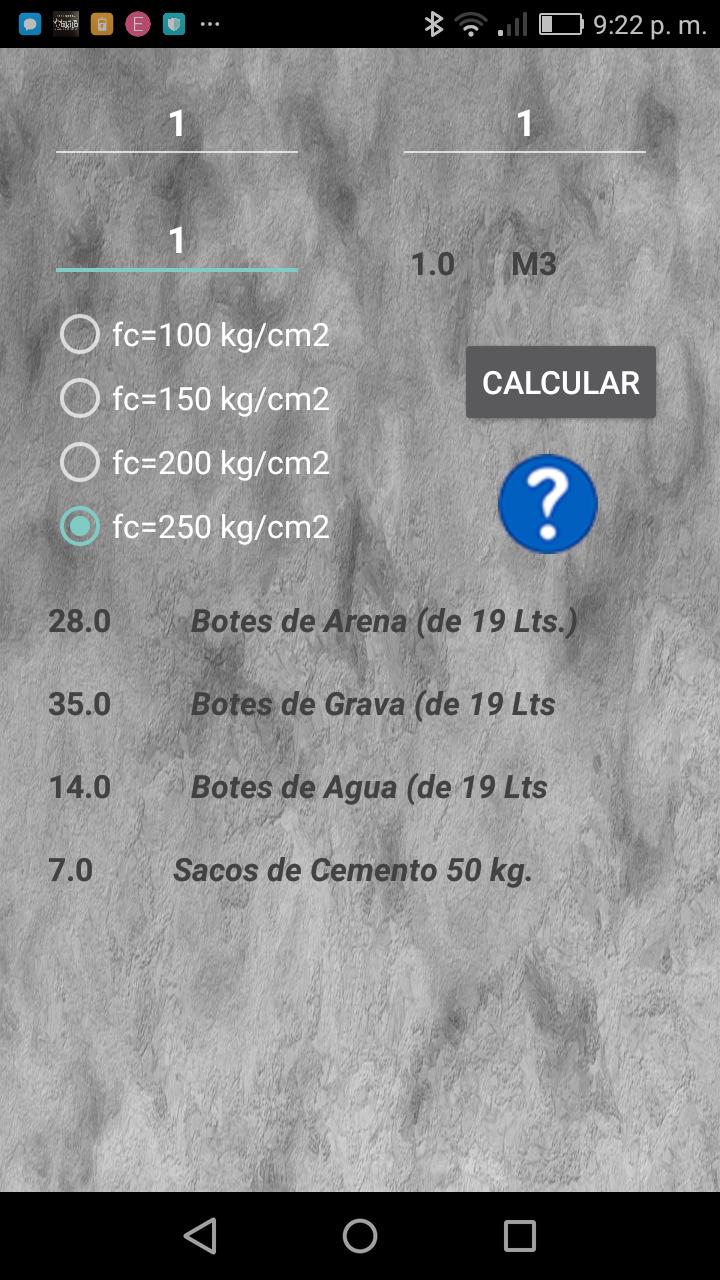 Thinking about the system "do it yourself" We created this app that will help in calculating the materials needed to prepare concrete.