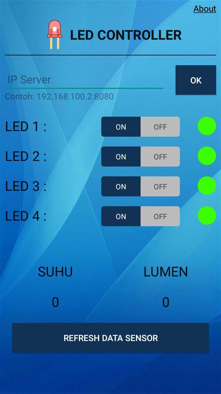 Selain itu aplikasi ini juga berfungsi menampilkan data bacaan sensor Suhu (LM35) dan sensor Cahaya (LDR)