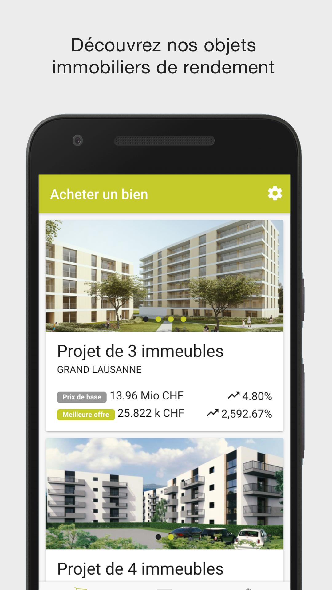 En tant qu'investisseur ou propriétaire foncier, participez aux enchères de biens immobiliers de rendement depuis votre smartphone. Bénéficiez d'informations complètes sur nos objets immobiliers et les transactions ! Misez de manière transparente et anonymisée sur les objets de votre choix!