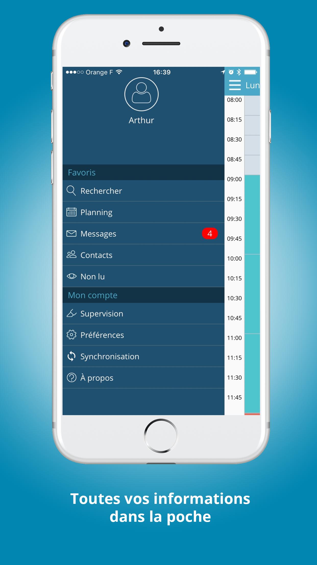 Calendar, messaging, contacts connected to your Télésecrétariat GEDO TIMES