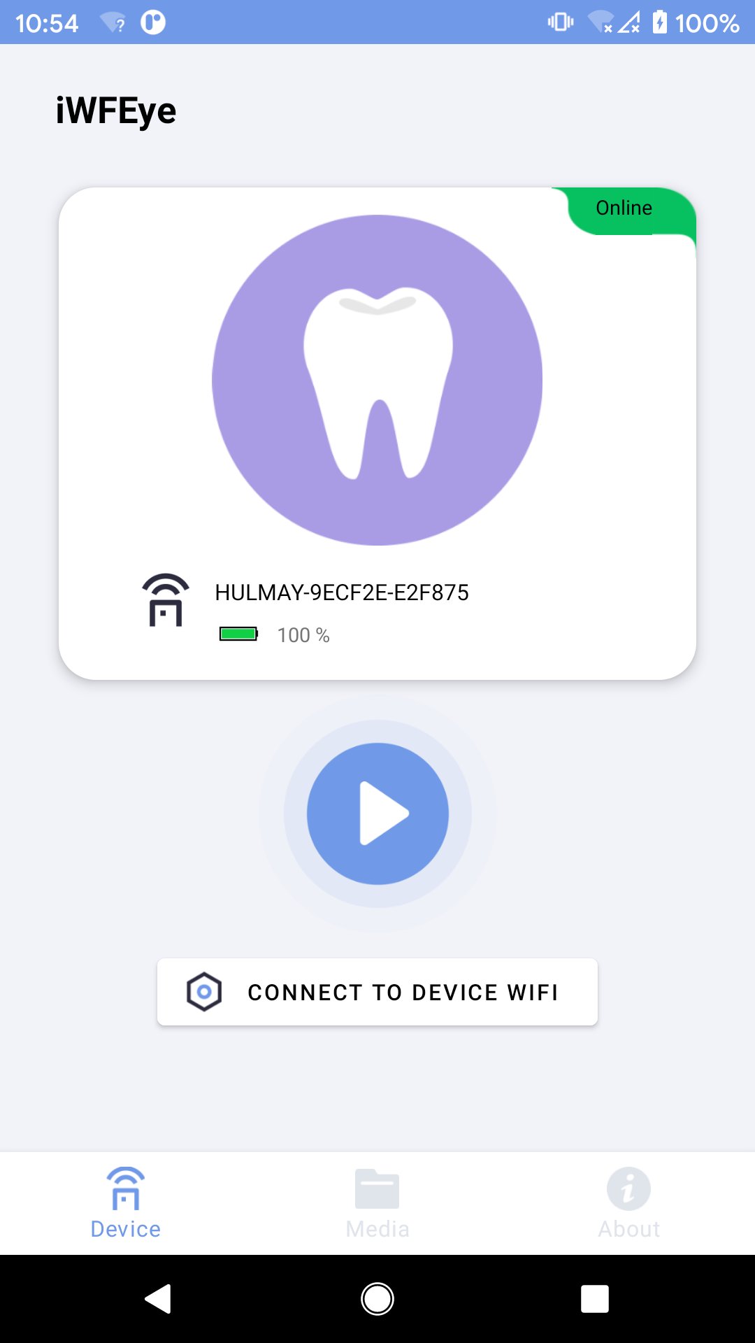 iWFEye is a useful tool, It can used to connect our products for cleaning teeth and skin. It can be used to view images of teeth, skin, and other areas. You can take a photo or record a video file, Share and store the photos and video files into photo albums.