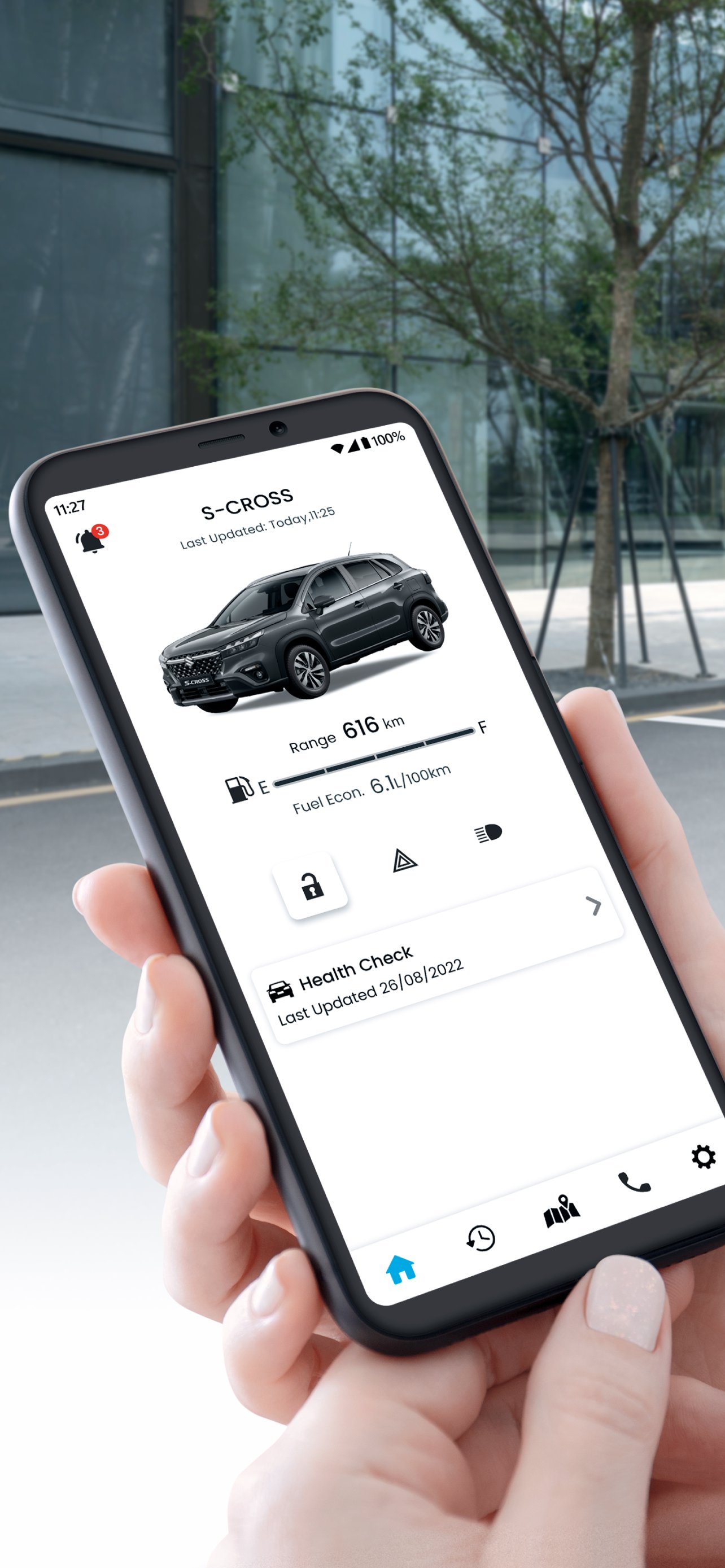 Anda boleh menyemak baki paras bahan api dan maklumat lain sepintas lalu pada skrin utama, menyemak lokasi letak kereta anda dari tempat terpencil dan menerima pemberitahuan berdasarkan status kereta anda.