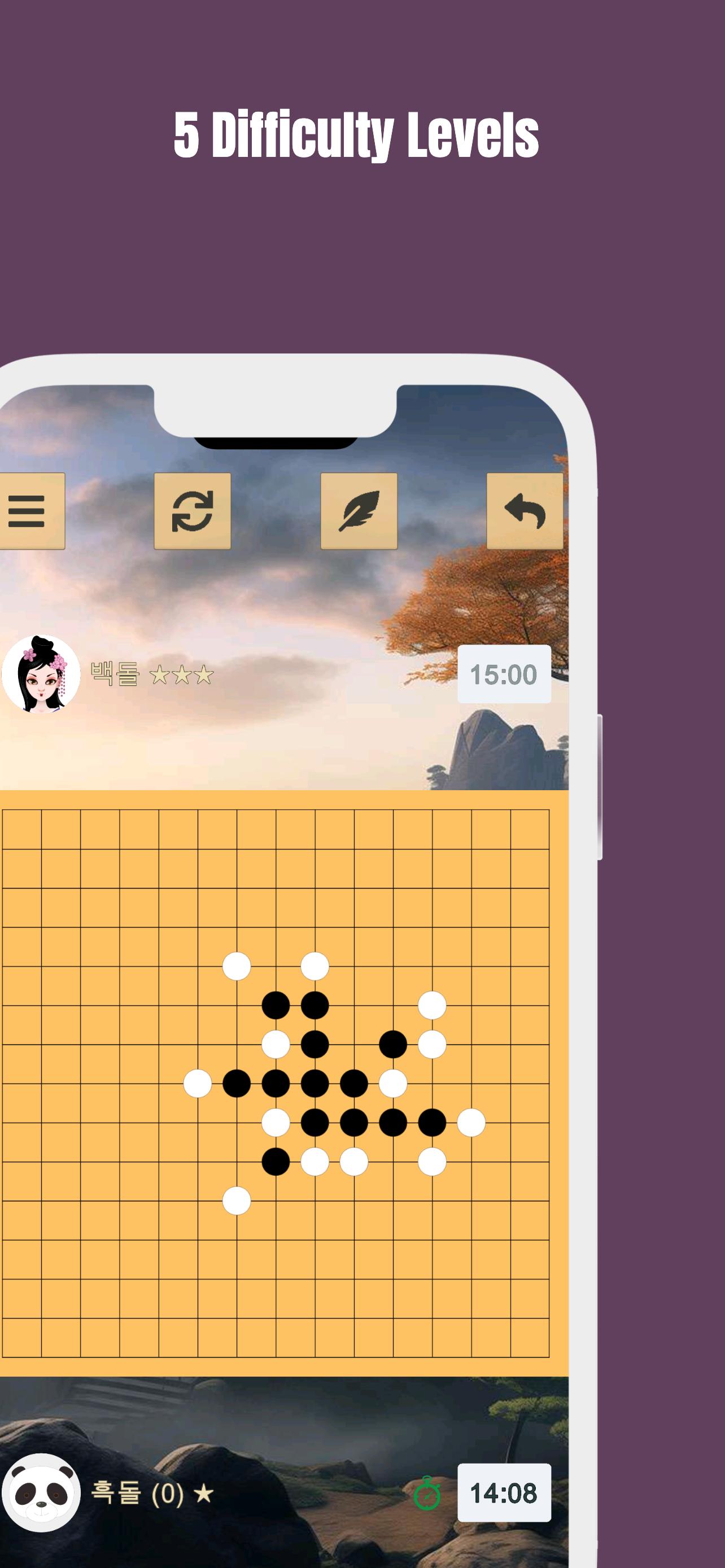 Terima versi gaya bebas Gomoku yang disokong dalam permainan ini, di mana membentuk barisan lima atau lebih batu membawa anda kepada kemenangan. Bersedia untuk menikmati kedalaman strategik Gomoku pada telefon anda!"