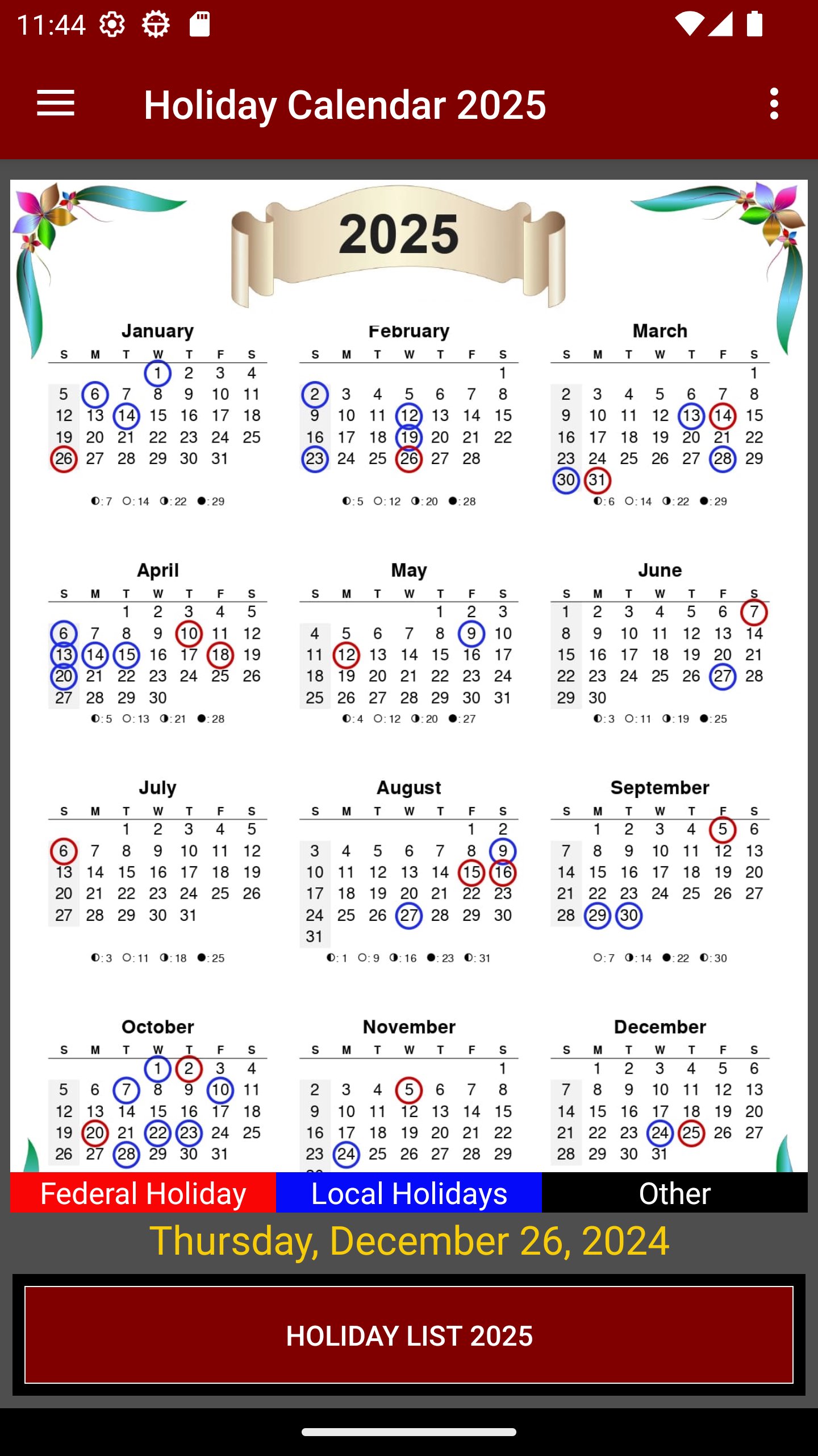 Calendar 2025 With Holidays, datang daripada pembangun APK Store, sedang berjalan pada sistem Android pada masa lalu.