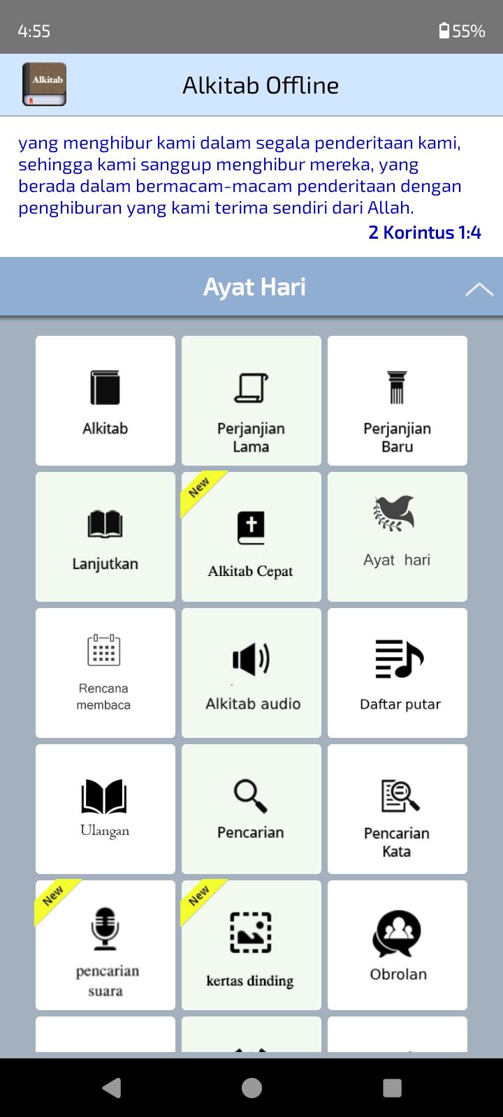 Kami amat berbangga dan gembira untuk mengeluarkan Alkitab - untuk telefon Android sepenuhnya di luar talian yang dimuatkan dengan ciri mesra pengguna. Aplikasi ini mengandungi kedua-dua "Perjanjian Lama" dan "Perjanjian Baru" dalam bahasa Indonesia. Kami sangat berharap bahawa aplikasi ini akan menggembirakan anda dan akan lebih berguna dalam membaca Alkitab.