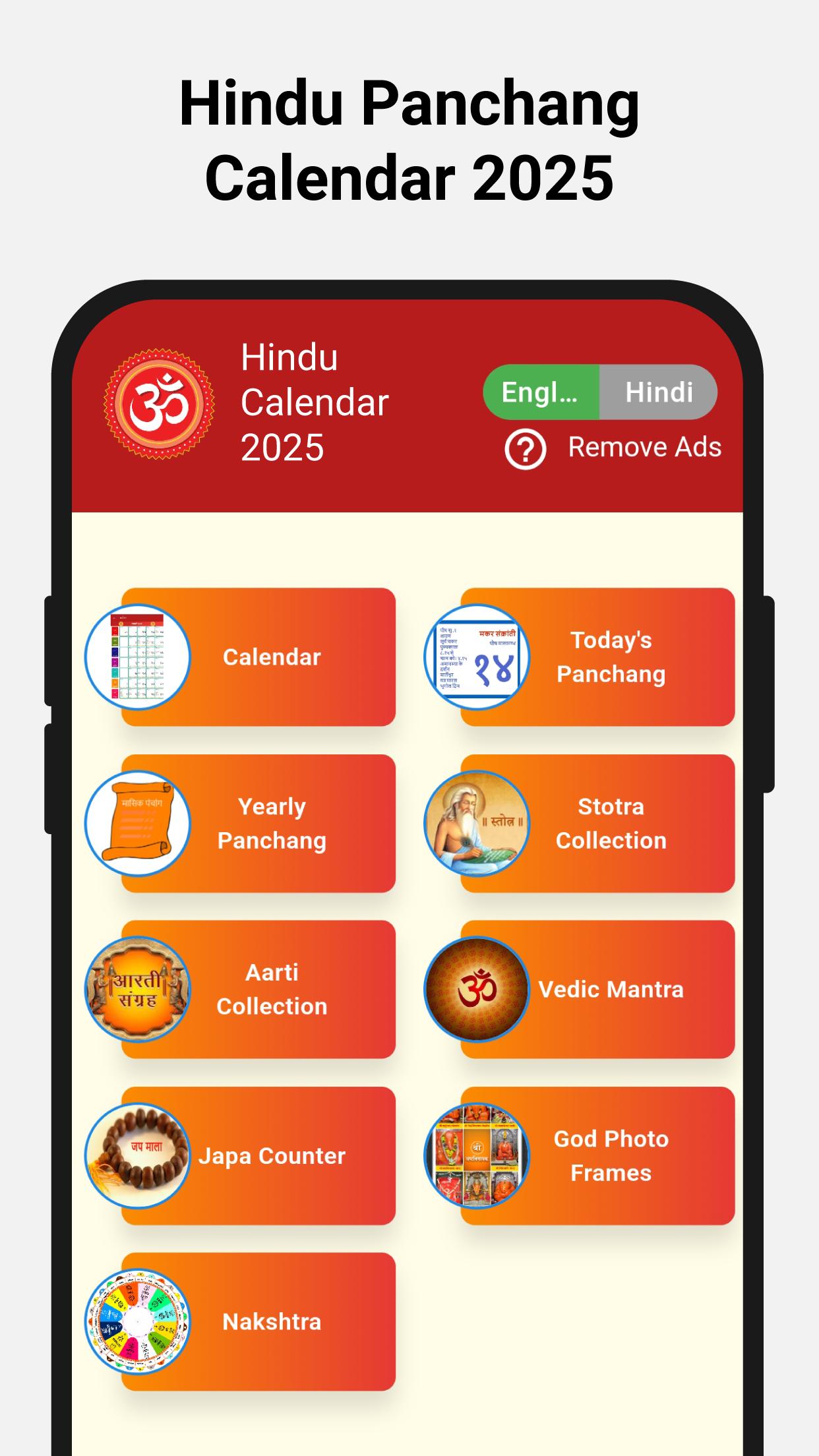 Kalendar Hindu 2025 - 2026 Aplikasi luar talian mempunyai maklumat lengkap seperti cuti, senarai perayaan India, Subha Muhurat, hari puasa, Kundali Milan dll.