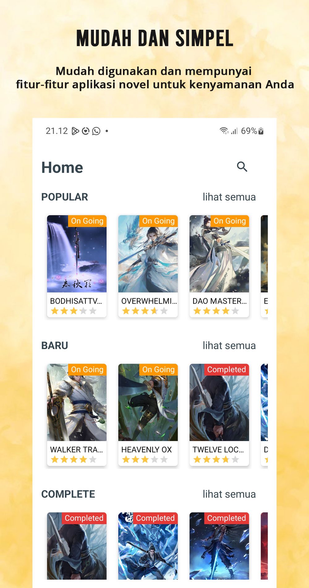 Novel World Bahasa Indonesia, datang daripada pembangun Indo Wuxia, sedang berjalan pada sistem Android pada masa lalu.