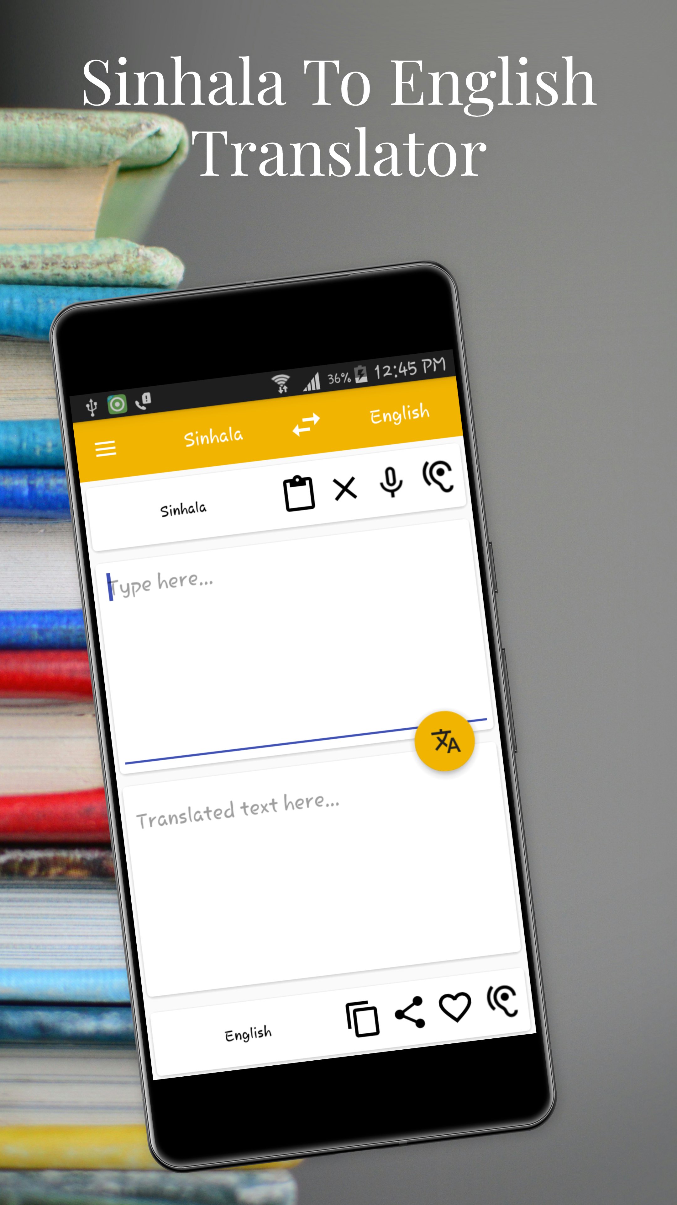 * Penterjemah Sinhala Ke Bahasa Inggeris Dan Terjemahan Bahasa Inggeris Ke Sinhala ialah alat terjemahan yang berkuasa pada android anda.