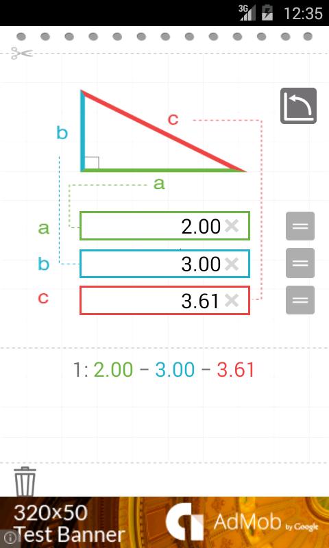 Aplikasi ini direka untuk mengira panjang sisi dalam segitiga segi empat tepat untuk pertukangan kayu.