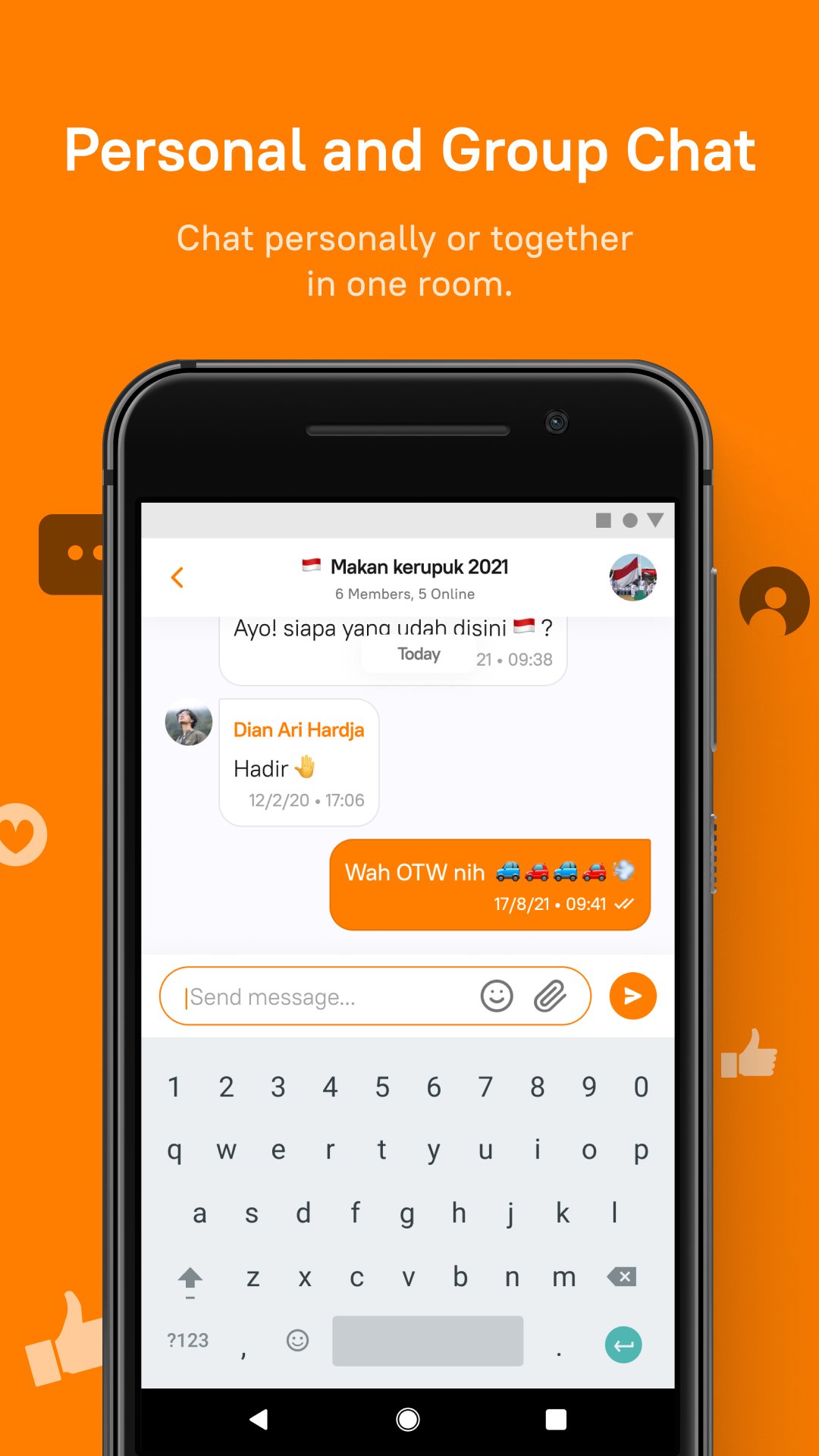 Berbual secara peribadi atau bersama dalam satu bilik. TapTalk juga membolehkan anda membuat sembang kumpulan sehingga 500 pengguna.