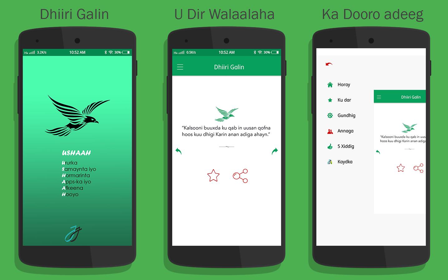 Dhiiri Galin Maalinlaa, datang daripada pembangun Abdirahman-Hassan, sedang berjalan pada sistem Android pada masa lalu.