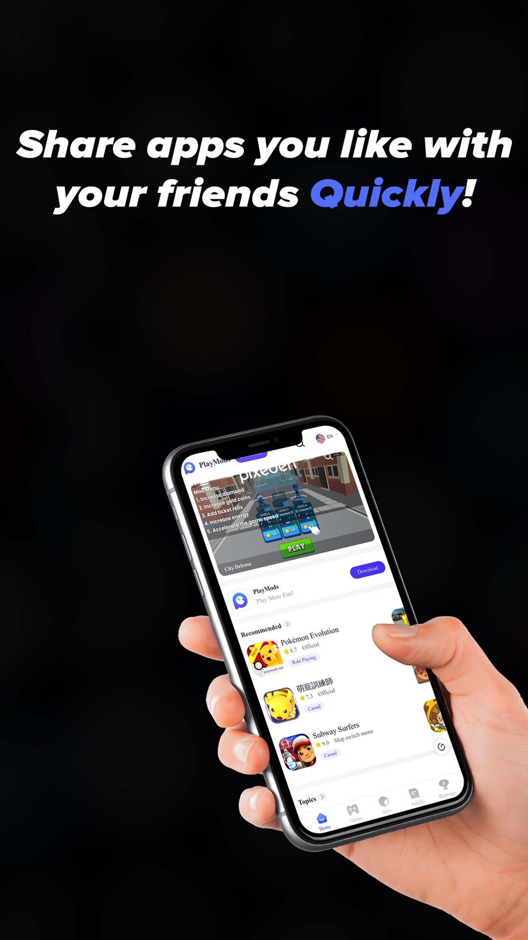 Muat turun beratus-ratus Apl dan permainan kegemaran anda dengan Playmods, apl itu mempunyai reka bentuk ringkas yang membolehkan anda menyemak imbas pelbagai kategori Playmods bagi permainan dan apl yang diubah suai.