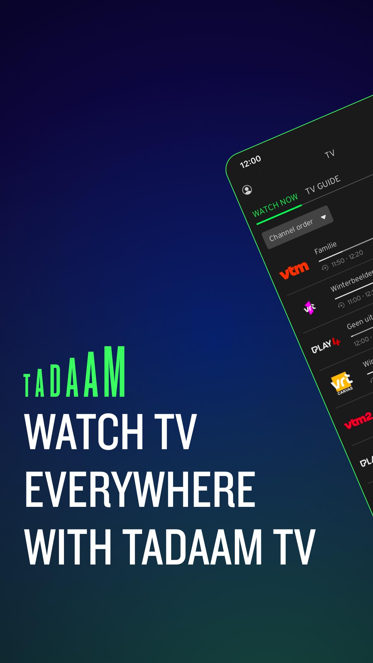 Aplikasi TADAAM tersedia pada pelbagai pemain media. Ini bermakna anda boleh menonton TV pada telefon pintar Android anda, tablet atau TV Pintar anda. Tonton 30+ saluran dalam HD. Rakam, jeda dan mainkan seberapa banyak yang anda mahu. Nikmati di mana-mana sahaja.