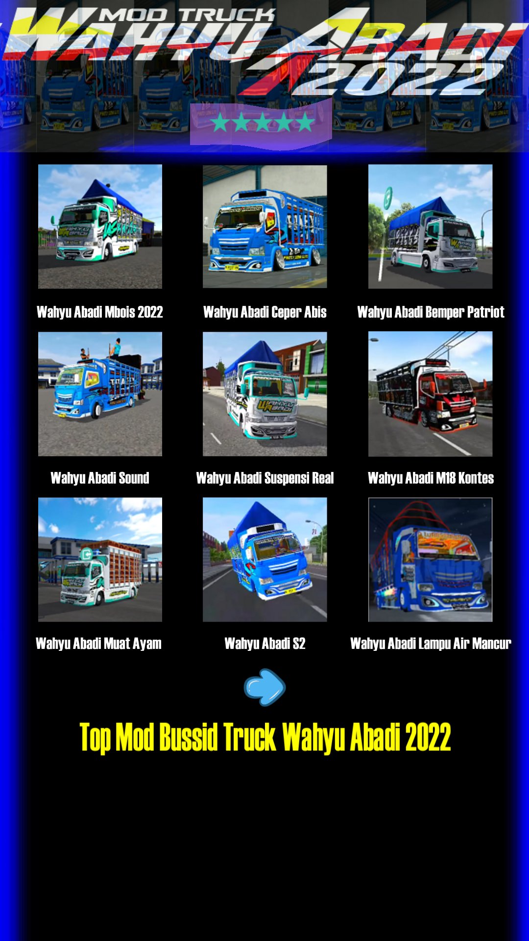 Dalam mod bussid truk wahyu abadi yang ke-2 ada saingan yang banyak beredar seperti mod truk anti gosip terbaru bemper patriot, mod bussid truk ayam bemper m18 dan mod bussid truk oleng cctv. Sedangakan mod truk wahyu abadi strobo air mancur dan mod truk wahyu abadi yang putih masih bertengger di jajaran mod terpopuler seperti mod truk dam muat pasir, mod truk explore om irul dan mod truk derek di bussid. Untuk mod truk kontes ceper juara 1 masih di dominasi mod truk wahyu abadi madura racing, mod bussid versi 4.3.4,mod truck umplung modif angsa putih serta mod truk wahyu abadi muat sound system.