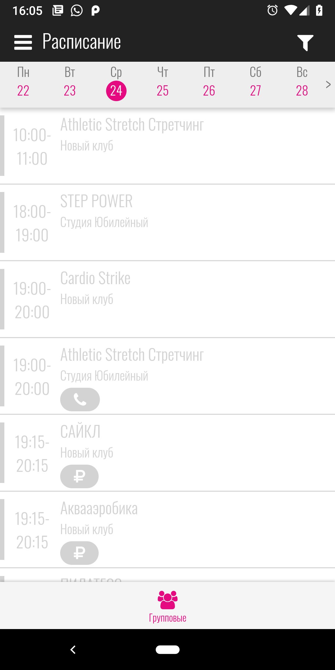 Dalam aplikasi Fizruk, anda boleh melihat jadual program kumpulan, mendaftar untuk latihan, menonton maklumat mengenai kontrak, berkongsi latihan dengan rakan, berkomunikasi dengan jurulatih dan banyak lagi.
