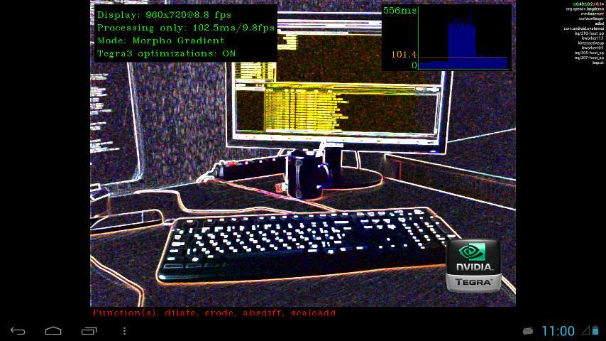 This application demonstrates the speed advantage of OpenCV on Tegra 3, Tegra 4 and Tegra 4i devices.
