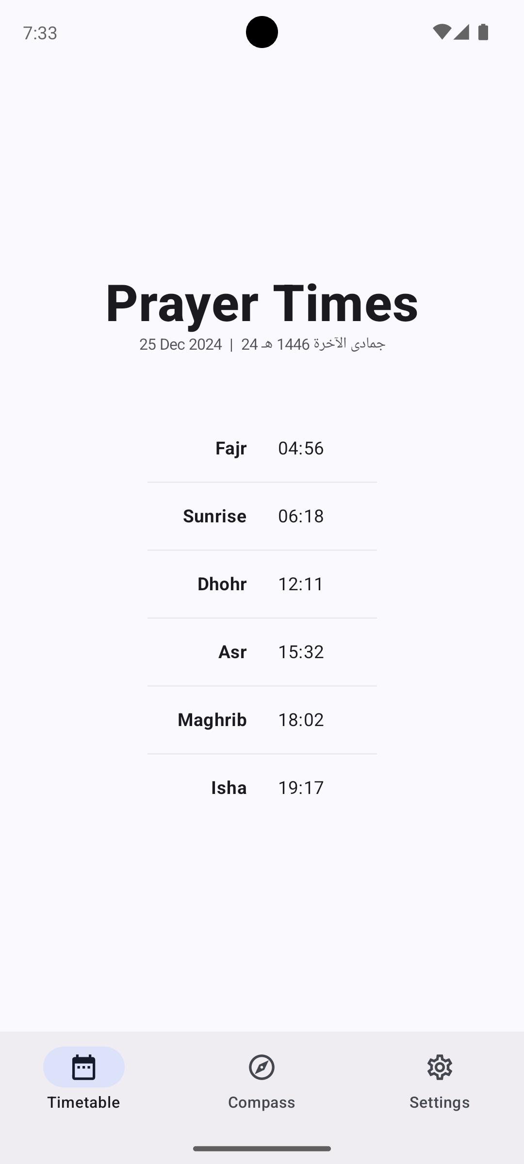 Aplikasi minimum yang menunjukkan jadual waktu solat Islam pada hari itu. Jadual waktu yang tepat, saiz muat turun yang kecil dan Tiada IKLAN! Apl ini adalah sumber terbuka, semak repositori GitHub untuk mendapatkan maklumat lanjut dan untuk menyumbang kod.