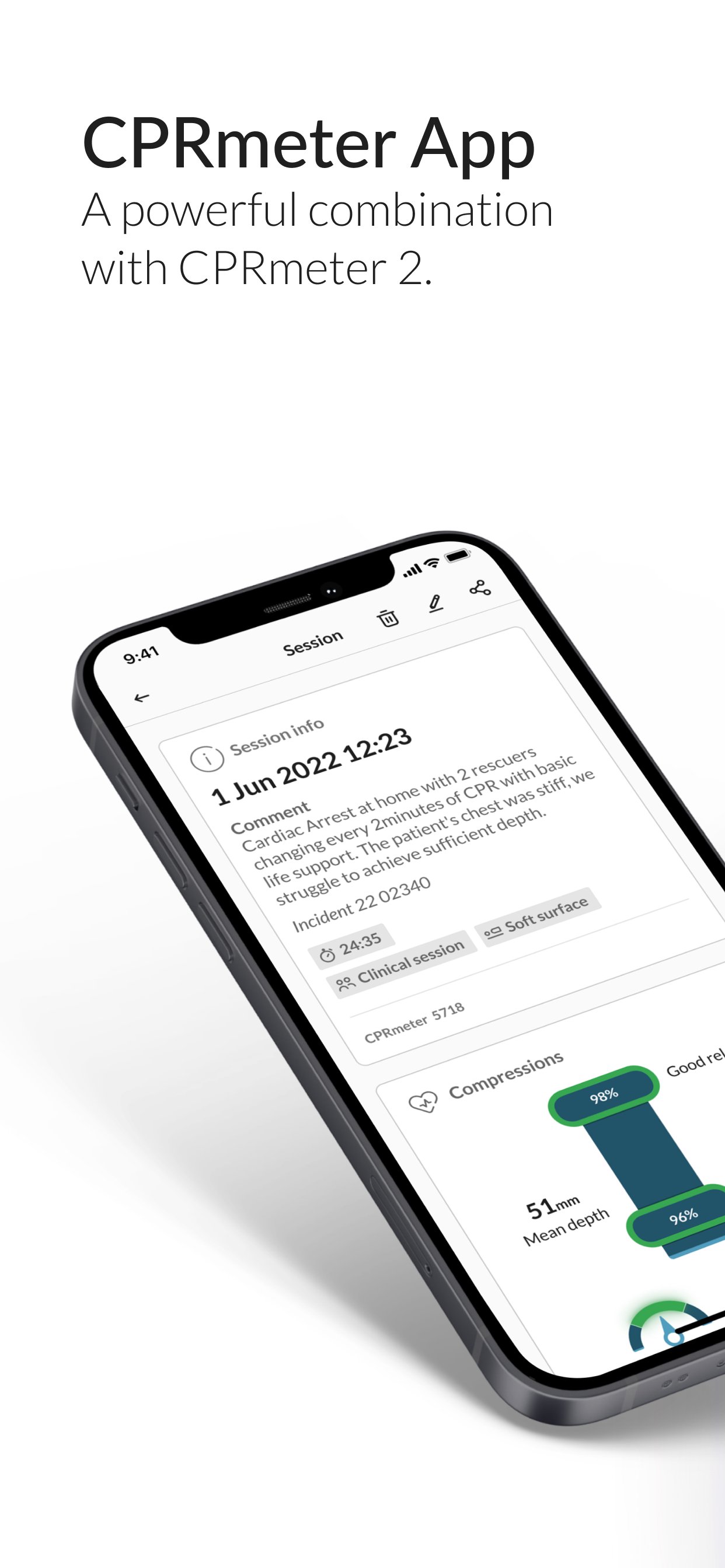 CPRmeter 2 dengan teknologi QCPR menyediakan latihan masa nyata dan maklum balas sumatif untuk membantu penyelamat mengoptimumkan prestasi CPR dalam keadaan klinikal. Digabungkan dengan aplikasi CPRmeter baru, organisasi kini boleh memacu inisiatif peningkatan kualiti dengan wawasan terperinci dan boleh dikongsi mengenai prestasi CPR.