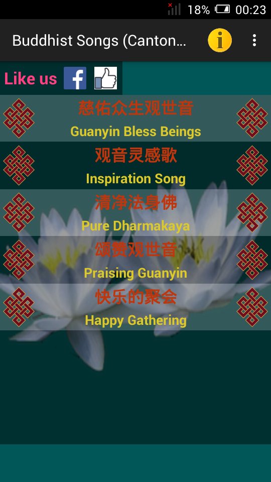 Cantonese Buddhist Songs 粵語佛曲, datang daripada pembangun Digital Buddha Apps, sedang berjalan pada sistem Android pada masa lalu.