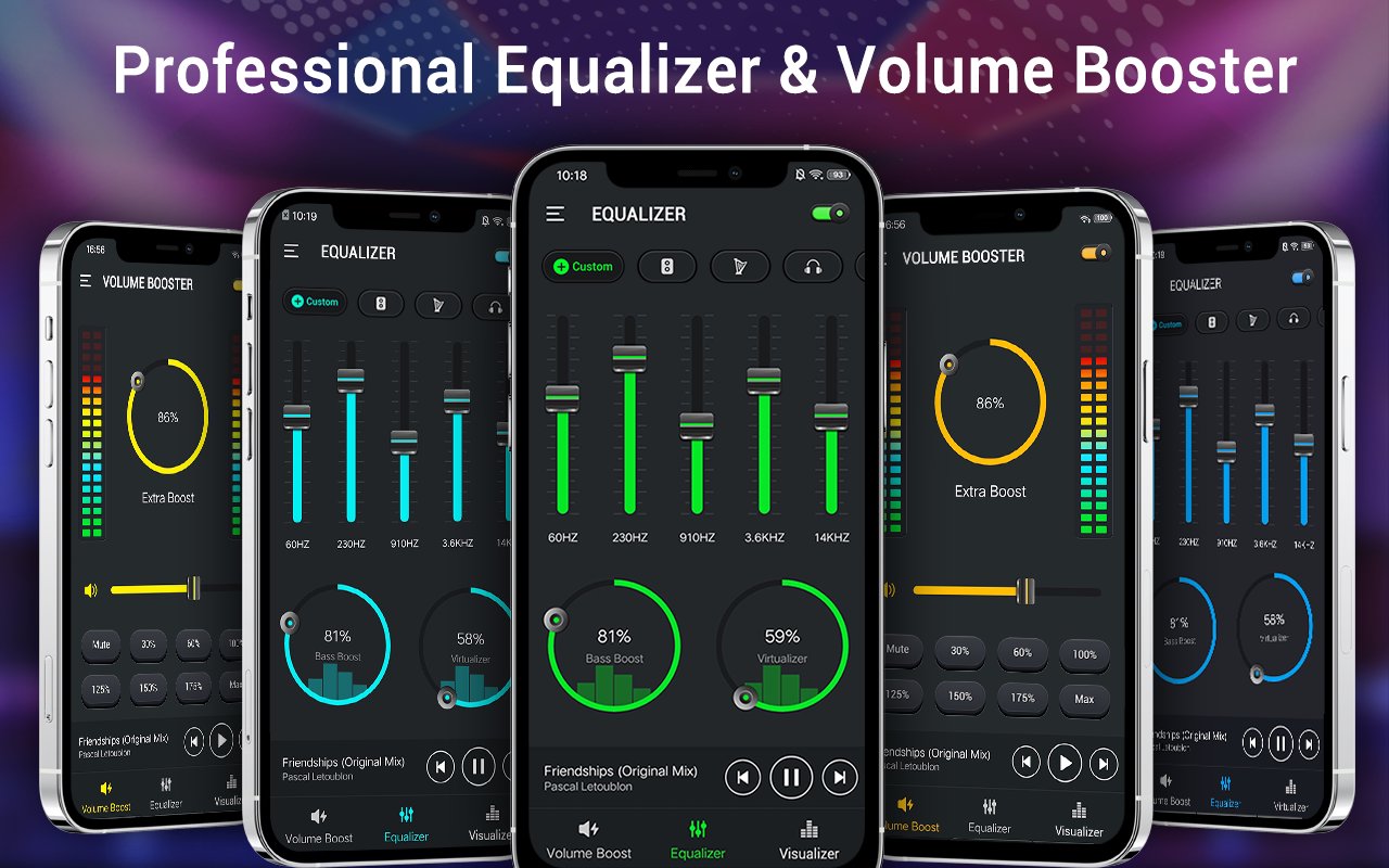 Penyama & Penggalak Bes membantu meningkatkan semua kualiti bunyi muzik dan video anda dengan Visualizer, Penyama, Penggalak Bass, Volume booster dan kesan Virtualizer 3D.