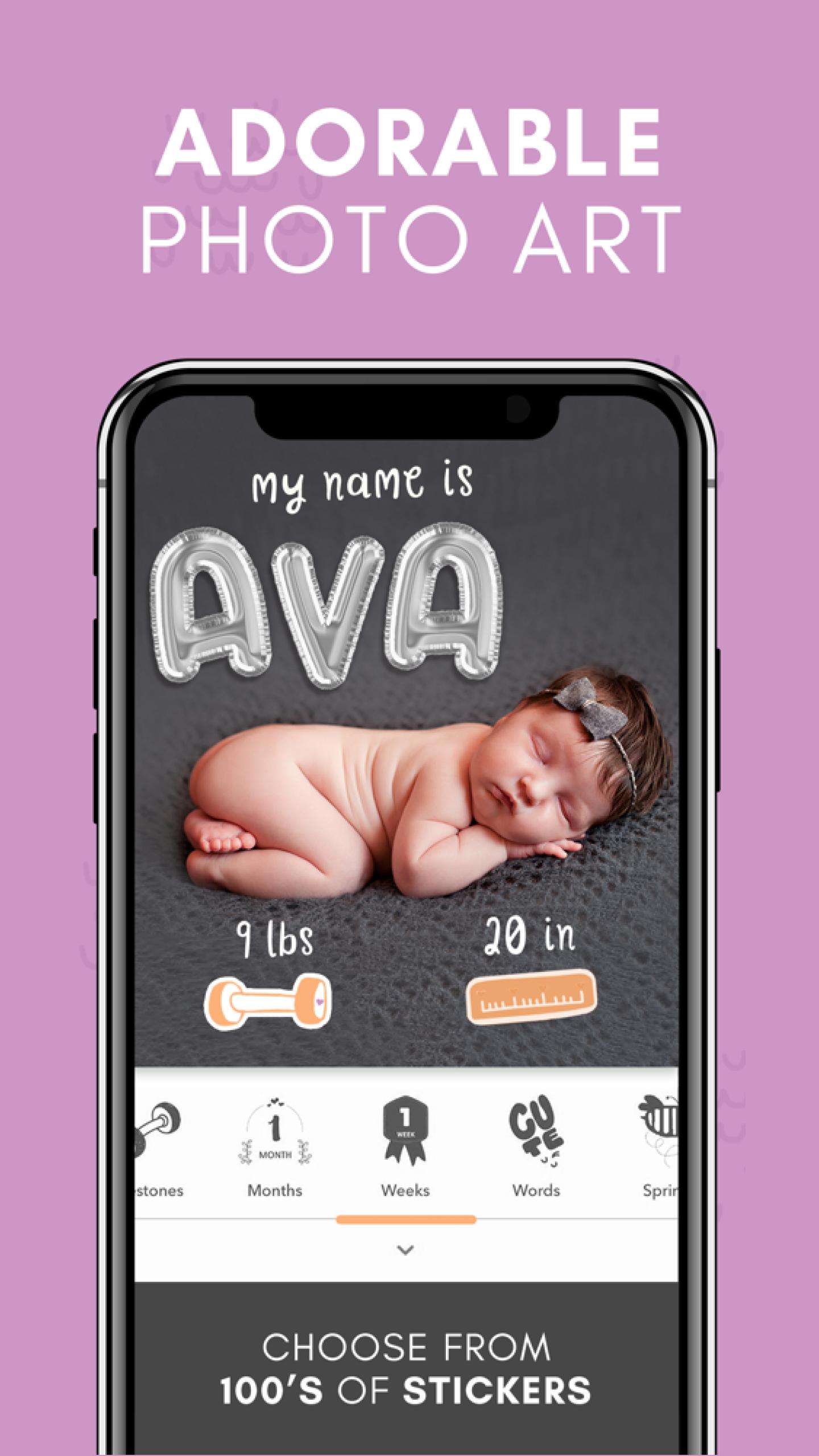You can watch your baby grow up with the Baby Time Lapse feature, smile at a slideshow of last weekend’s activities, or effortlessly browse older baby pictures in the Photo Calendar. Every one of your baby's monthly milestones is accompanied by beautiful photo frames & collages, made for you. Have fun with your photos by exploring the hundreds of unique stickers we have available to mark the fun activities you and your baby share.