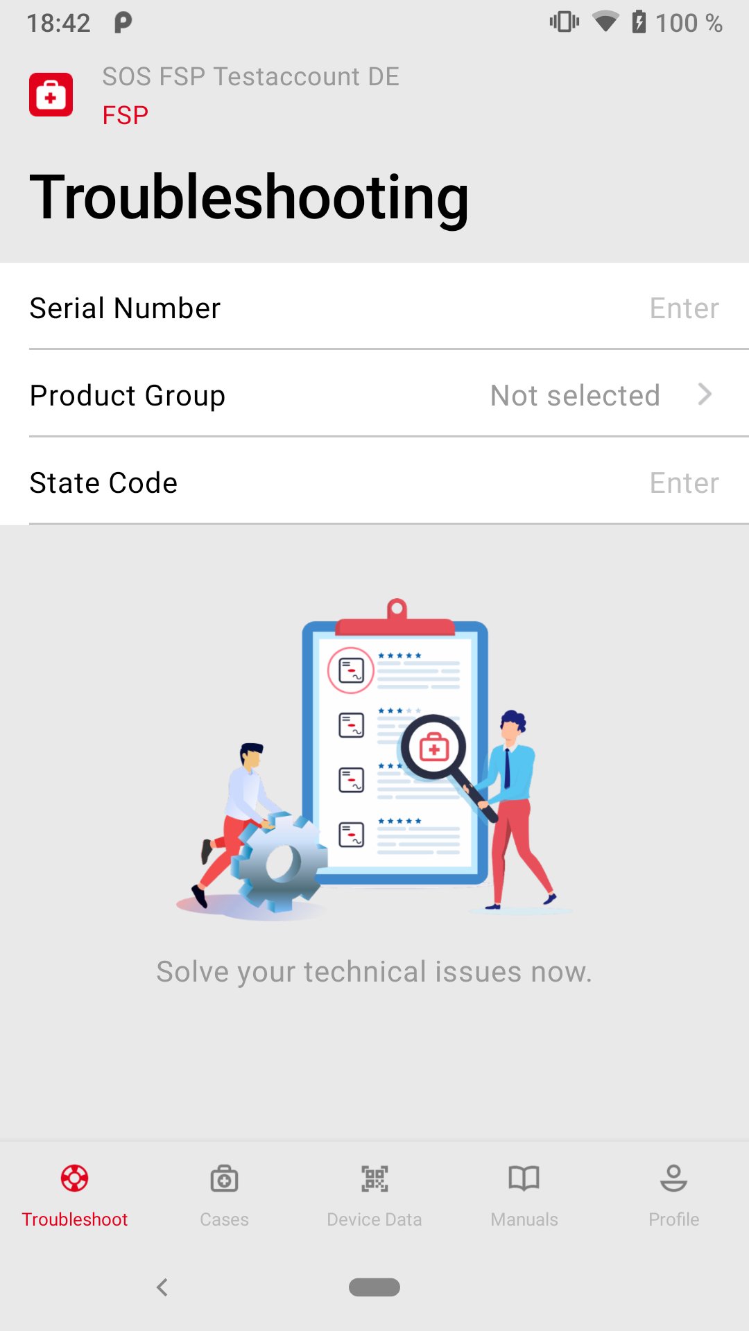 Fronius Solar.SOS ialah penyelesaian layan diri untuk semua soalan teknikal. Ini ialah aplikasi perniagaan yang boleh digunakan oleh pemasang untuk memulakan proses perkhidmatan dalam talian terus di lokasi sistem - secara ringkas dengan nombor siri penyongsang atau kod keadaan.